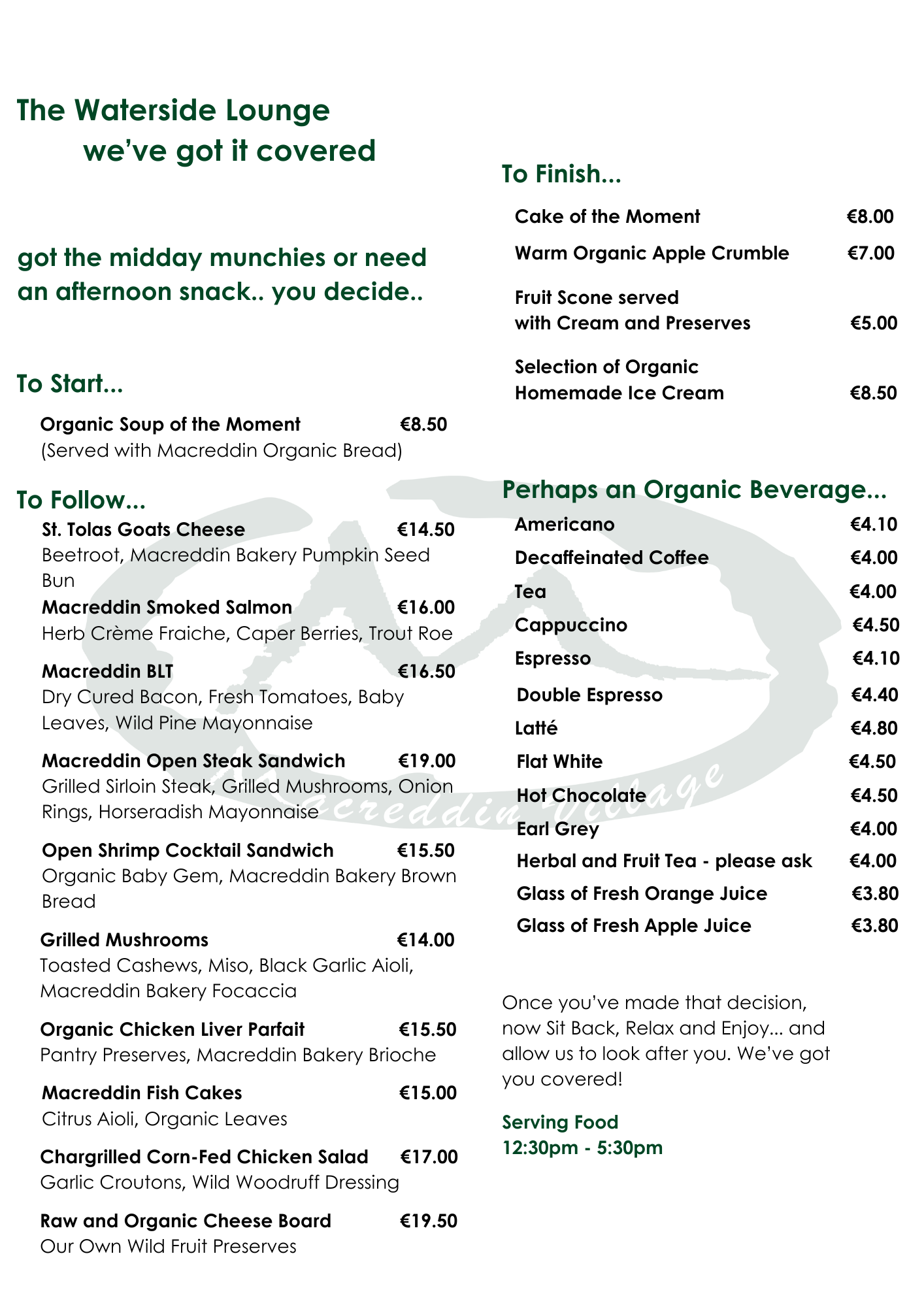 Tucked away in the corner is the Game Bar, where a bottle or two of BrookLodge & Macreddin Village’s own Organic and Wild Gin may be hiding. Whatever your favourite tipple or nibbles, the Waterside Lounge is made for relaxation, any time of the day or night.